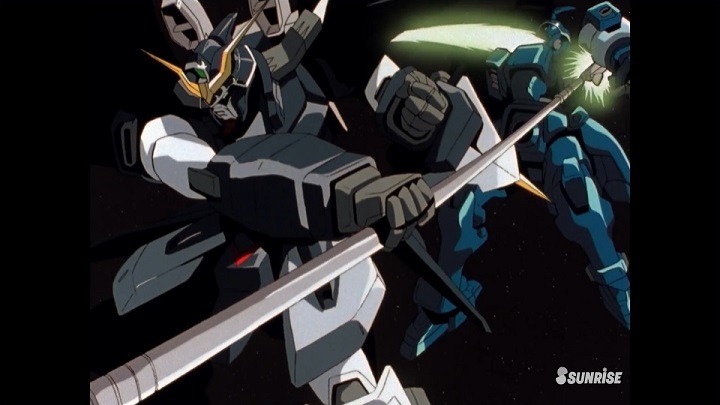 ヒルデのトーラスと合流したデュオが目撃したのが、メリクリウスとヴァイエイト。ヒルデの発言により、それらにヒイロたちの戦闘データが組み込まれていることを知った彼は、一度は戦慄したものの、果敢に挑戦していきます。一度は追い詰められたガンダムデスサイズヘルですが、「モビルドールに人間は負けない」という強い意志で、次々に2機を撃破し逆転勝利。同じ頃、ヒイロたちもビルゴⅡ&ビルゴ部隊を全滅させていたことから、今回のカーンズの作戦は完全に失敗に終わるのでした。終盤で、デュオがメリクリウスとヴァイエイトに遭遇。それぞれにヒイロとトロワの戦闘データが組み込まれていましたが、強い意志に突き動かされるデュオの敵ではありませんでした。終盤で、今回の目玉とも言える、ガンダムデスサイズヘルVSメリクリウス&ヴァイエイトの戦闘が挿入。その気になれば、最強クラスの敵として数話は引っ張れそうなものですが、なんとどちらもデュオの手で倒され、退場してしまいます。デュオはガンダムパイロットの中でも、特に感情を露わにするタイプであるため、メリクリウス&ヴァイエイトを相手にしたときのある種の恐怖、そしてそこからの立ち上がりがしっかりと視聴者にも伝わるのはGoodでしたが、せっかく強敵として復活したんだから、メリクリウス&ヴァイエイトはもう少し活躍してほしかったかな。そんなデュオの戦闘と時同じくして、ヒイロたちもビルゴⅡ&ビルゴ部隊を撃破。カーンズの作戦は失敗に終わります。結局、今回のカーンズの作戦は、ホワイトファングの戦力をムダに消耗しただけ。ピースミリオンを叩いたうえで財団&OZの戦いに臨みたい気持ちはよくわかりますが、もう少し足元を固めてから行動に出るべきでしたね。